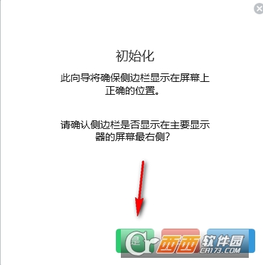 2、初始化:此向导将确保侧边栏显示在屏幕上正确的位置。请确认侧边栏是否显示在主要显示器的屏幕最右侧?