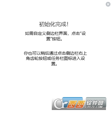 3、初始化完成!如需自定义侧边栏界面,点击设置按钮。你也可以稍后通过点击侧边栏右上角齿轮按钮或任务栏图标进入设置。