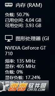 6、内存(RAM)、负载:50.86%、已用空间:4.05GB、可用空间:3.91GB、图形处理器 NVIDIA Ge Force GT 710