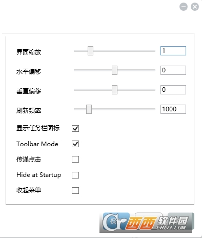 10、界面缩放、水平偏移、垂直偏移、刷新频率、显示任务栏图标、 Toolbar Mode、传递点击、 Hide at Startup、收起菜单
