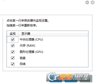 12、监视功能,点击某一行来修改硬件监视设置。拖拽某一行来重新排序,自己选择监视的硬件