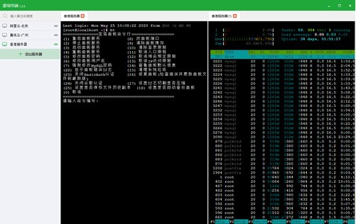 可同时管理多台服务器,左右布局,支持添加删除终端,无数量限制,多标签/分屏切换操作。