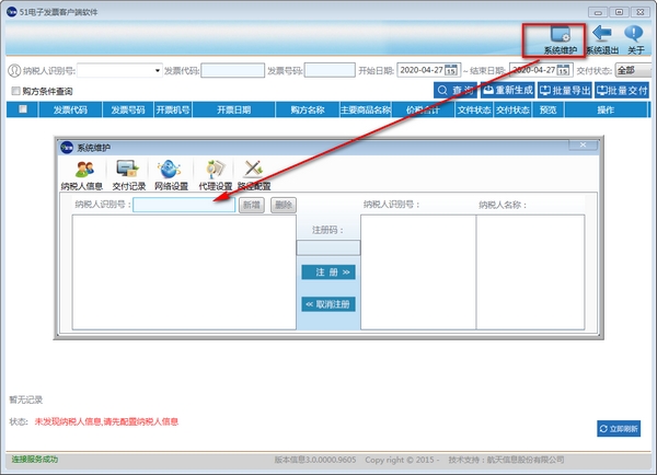 二、打开软件后点击系统维护用于批量添加新的纳税人信息