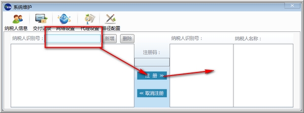 三、输入纳税人识别号,填写注册码,点击注册即可添加新的纳税人名称批量管理。