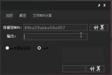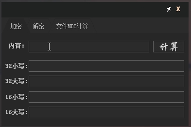一共就3个简单的功能:文本加密MD5,MD5解密,和计算文件的MD5值。