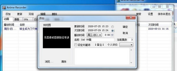 选中列表中动画名称,点更新,则集数自动+1集,次回时间自动+7天