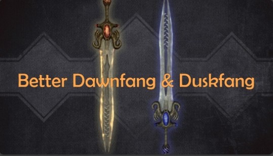 上古卷轴5重制版更好的黎明牙和黄昏牙MOD是非常多的人都在使用人用的一款简洁非常实用的武器类游戏修改软件,玩家使用后能够让黎明牙造成9点火焰和霜冻伤害,并吸收20点生命值或魔法加成,而没有额外津贴。接下来万能驱动网小编就给大家带来这款软件的具体介绍,感兴趣的小伙伴们速来看看吧~~