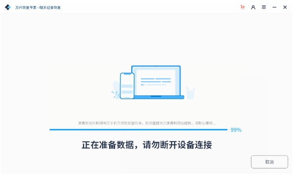 现在手机普遍扩容,所以微信聊天记录会可能占据较大的空间,如果扫描准备时间较长,请耐心等待,一般不超过5分钟;