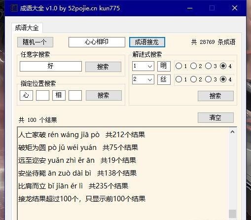 支持同音字接龙,由于结果可能非常多的人都在使用,所以只显示前100个接龙结果
