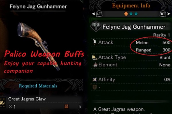 为全部14种武器追加新连续技和新要素,使各武器更具特色,玩家可以享受到更多元化的动作。所有武器共通的新动作“抓牢”利用投射器的追加扩张功能“飞翔爪”,发射钩爪并紧抓怪物。攀在怪物身上时虽然会消耗耐力,但会限制怪物的行动,衍生出新的战斗方式。