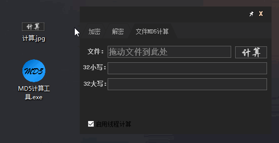 最后是文件md5,拖入,或复制粘贴文件地址在点击计算就行啦!
