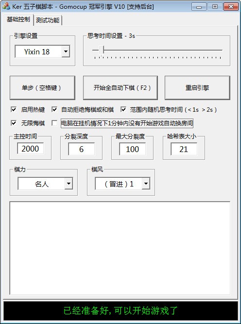Ker五子棋脚本是非常多的人都在使用人用的一款非常实用的五子棋脚本工具,针对QQ游戏的五子棋开发,本脚本只适用于QQ游戏五子棋,Yixin引擎,启用热键,自动拒绝悔棋和活棋,范围内随机思考时间,无限悔棋。接下来万能驱动网小编就给大家带来这款软件的具体介绍,感兴趣的小伙伴们速来看看吧~~