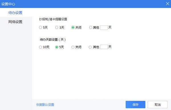 待办设置包含 2 个功能抄报税/清卡提醒设置和待办天数设置。