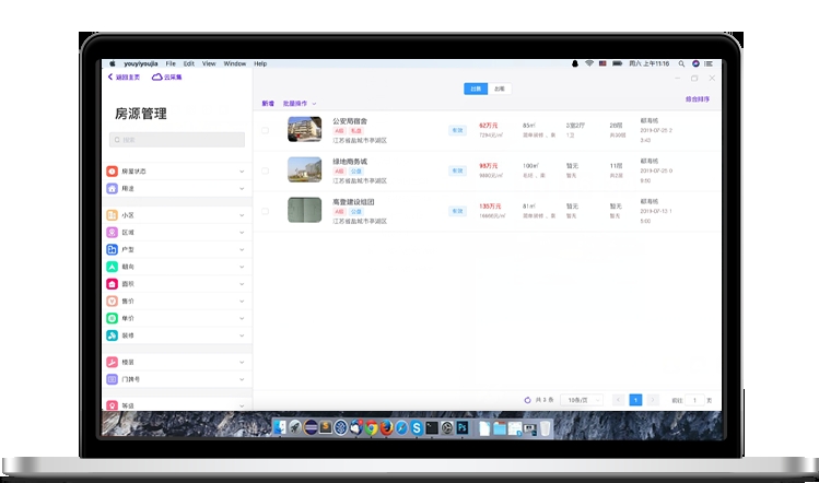 与微信的携手,最新房源实时推送,消息提醒,全方位涵盖pc端功能。