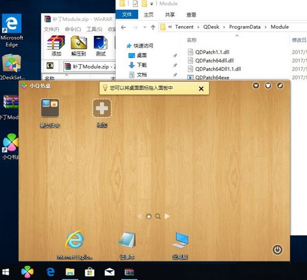 3、找到桌面上的小Q书桌图标,右键打开文件所在位置。(一般安装在C:⁄Program Files (x86)⁄Tencent⁄QDesk),并找到目录ProgramData⁄Module。完整的路径例如:C:⁄Program Files (x86)⁄Tencent⁄QDesk⁄ProgramData⁄Module4、删除QDesk⁄ProgramData⁄Module目录下的所有文件,共4个文件:QDPatch1.1.dll、QDPatch64dll.dll、QDPatch64Dll1.1.dll、QDPatch64exe.exe将 补丁Module.zip 内的文件解压到QDesk⁄ProgramData⁄Module目录下,若提示文件正在被使用,请在任务管理器里关闭小Q书桌并重新启动Windows资源管理器即可。