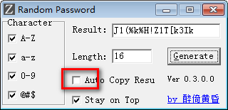 三、点击勾选自动复制,在生成密码的同时自动复制密码。