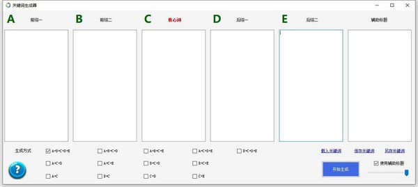 1、将要组合的关键词、内容录入到ABCDE等列中(一行一个,支持从表格或word等文本直接复制黏贴过来)