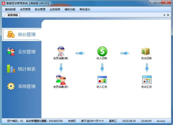 智能足浴管理系统是非常多的人都在使用人用的一款可以适用于足浴店的管理系统,支持会员消费管理、会员基本信息管理以及各种查询统计,使用智能足浴管理系统,可以显著提升管理者的工作效率是一套功能强大的会员卡管理系统和客户管理系统,软件将会员消费、会员基本信息、以及各种查询统计等紧密结合 起来,操作简单非常方便,界面美观大方,能满足各个行业进行会员制管理,会员卡管理,会员积分管理,会员消费管理的需求.
