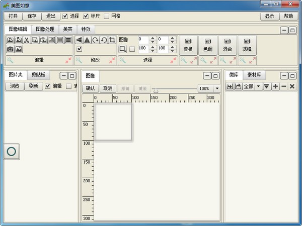 3、具有完备的标尺、网格、缩放功能,美图如意免费版具有灵便的剪贴板和素材库功能,支持高效地进行图片创作、美化工作,可以获得令人满意的精美效果。