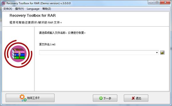 它以RAR格式从损坏的受密码保护的档案中恢复信息。(客户应手动输入密码。)