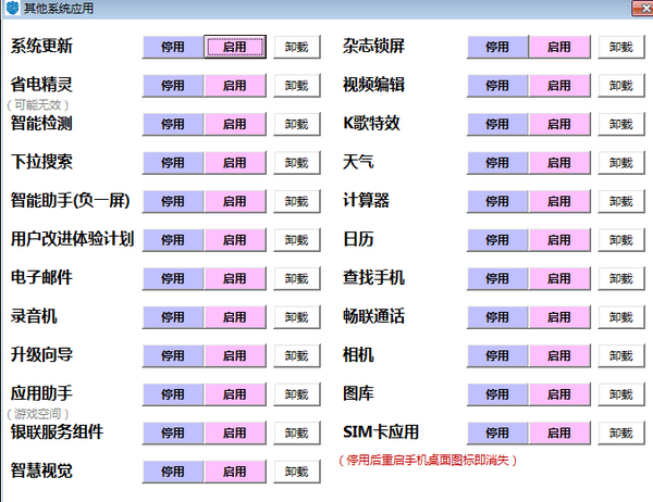 支持华为手机的系统应用卸载与停用