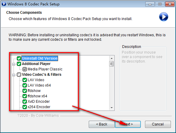其次,在部署过程中,用户可以自由选择要安装在系统上的编解码器组件,FFDShow,LAV 过滤器,Haali Media Splitter,MPC-HC 和VS过滤器可以在安装过程的早期就提供。根据用户需要进行检查或取消检查。