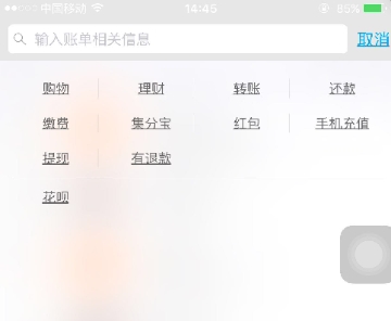 3在【账单】页面点击【筛选】,跳转到搜索页面