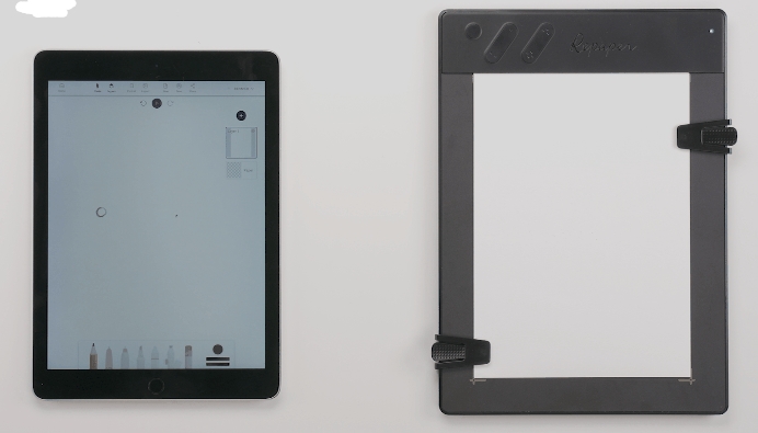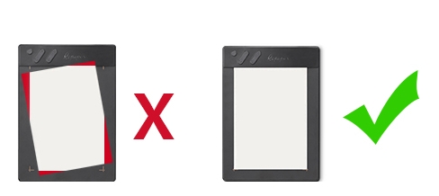 ②正确摆放纸张。将A5尺寸画纸沿Repaper面板的四个标记点摆放(为了更好的使用体验,请放上一张画纸,也不要使用过厚的卡纸)。