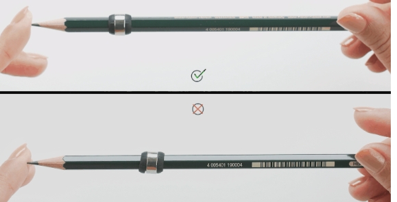 ③如果使用的铅笔,查看笔尖是否磨损严重,或笔尖并未在笔杆中心。建议及时使用卷笔刀削铅笔。