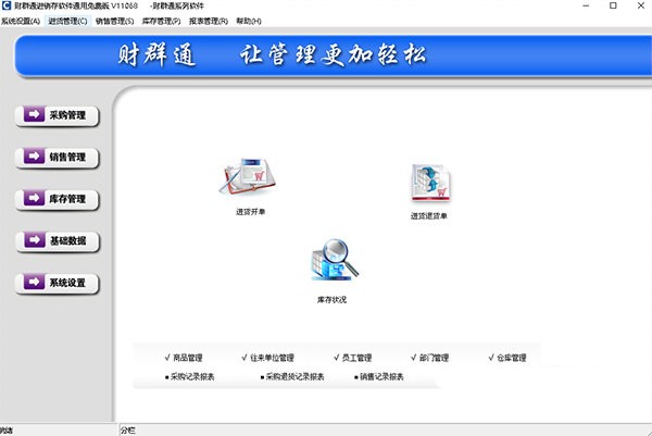 财群通进销存软件是非常多的人都在使用人用的一款功能集成度比较高的进销存管理工具,广泛适用于百货、五金、机电、通讯、电子、装饰材料、办公设备、家具、皮具、化妆品、化工、书报、音像等行业,拥有强大的报表功能,清晰明了,操作简便,上手快,接下来万能驱动网小编就给大家带来这款软件的具体介绍,感兴趣的小伙伴们速来看看吧~~