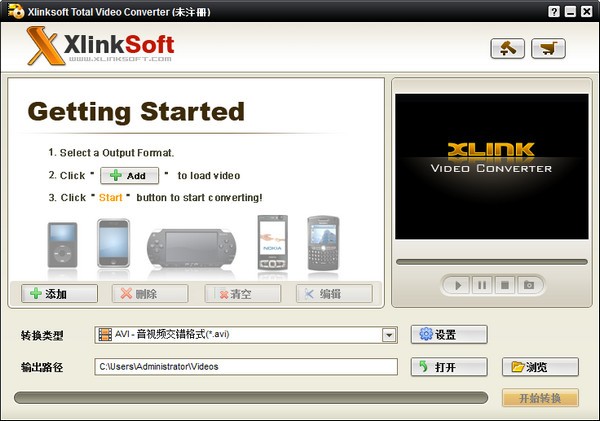 Xlinksoft Total Video Converter是非常多的人都在使用人用的一款视频转换程序,它可以转换几乎所有的视频文件像AVI, FLV, 3GP, MP4, MPG.等。支持AVI, MPEG, WMV, MP4, FLV, MKV, H.264/MPEG-4, DivX, XviD, MOV, RM, RMVB, M4V, VOB, ASF, 3GP, SWF, H.261, H.264, MJPEG, QT, DAT格式文件之间的相互转换。