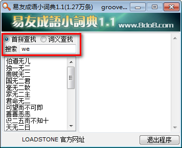 易友成语小词典是非常多的人都在使用人用的一款简单易用的成语学习小工具,软件主执行exe程序只有70k,共收录1.27万条成语条目,包括词义,拼音,出自以及举例项目 ,支持词语首拼输入,还可以词义搜索,找寻指定词义的成语条目,有需要的小伙伴千万不要错过了,赶快来万能驱动网下载吧~