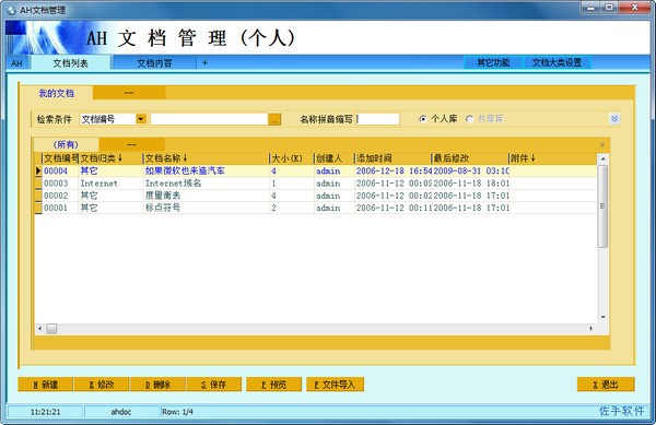 AH文档管理系统是非常多的人都在使用人用的一款简单易用的文档管理软件,企事业个人都适用,软件直观简洁,任意条件模糊查找,可自定义文档大类小类和文档栏目,能高效的对企业文档进行管理,分类,大大的提高文档的使用效率,有需要的小伙伴千万不要错过了,赶快来万能驱动网下载吧~