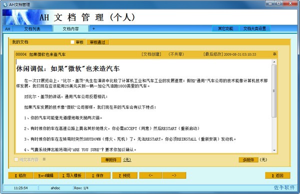 AH文档管理软件秉承佐手AH系列软件新颖非常实用简便的特点,可以帮助用户对企业文档进行管理,分类,还支持在线编辑文档,并将编辑好的文档导出来。