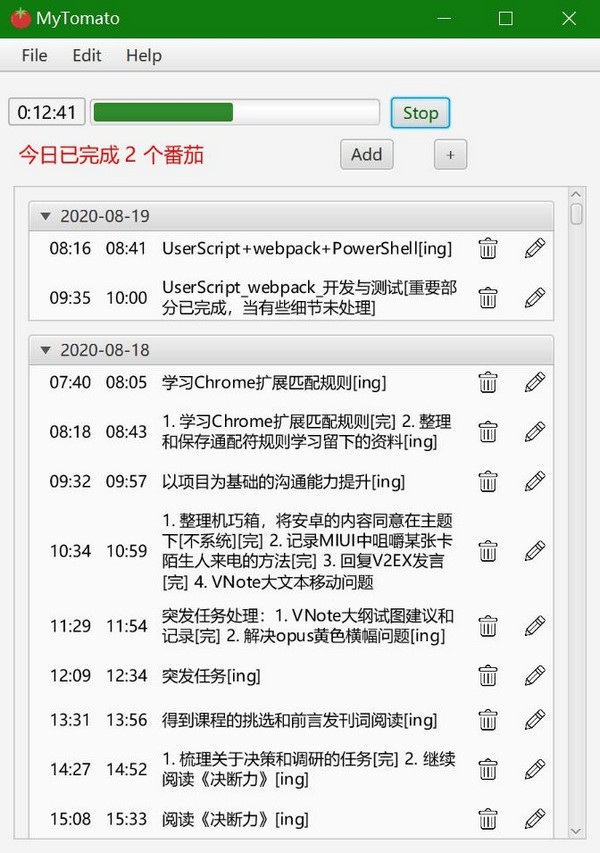 流程也很简单:写清单、定番茄钟、专心做事、记录数据。