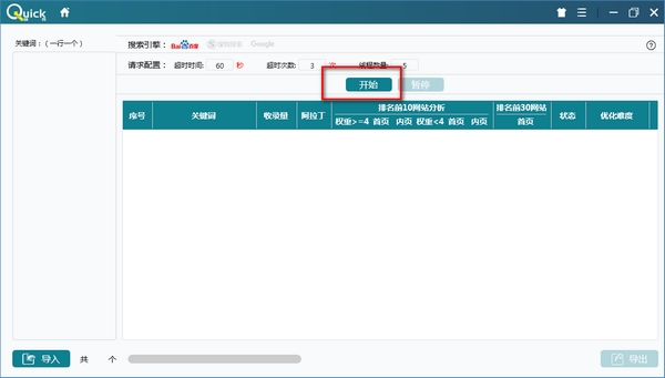 二、打开了关键词分析功能,点击导入,导入查询关键词。