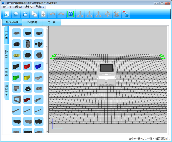 这套3D仿真平台主要应用于机器人编程的教育以及竞赛方面,最大的特点是用户可以自行搭建机器人,根据自己的需要设计机器人的结构以及功能,然后将编写好的机器人程序导入机器人就可以放到三维虚拟的比赛场地上面完成任务,或者和其他对手同台竞技。