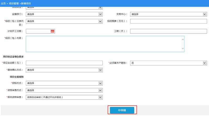 (4)录入招标相关信息,点击【存草稿】;