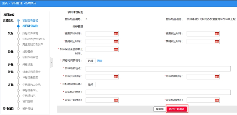 (6)项目计划制定,填写完相关信息,请点击【项目计划确认】;