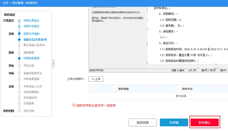 招标项目发布流程: