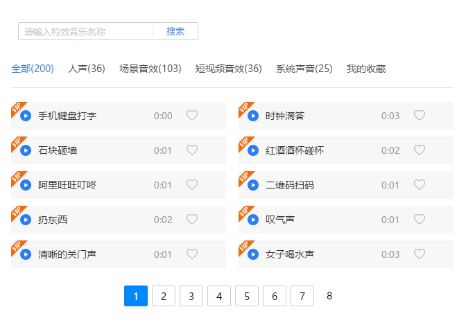 对于全方位丰富音频内容的用户,直接点击上方的特效音乐就能选择你想要的特效音。