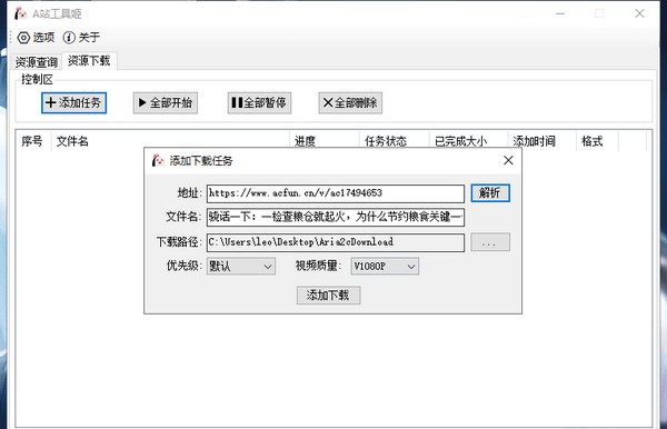 下载暂时不支持中路路径,不过这是ffmpeg的问题,有解决办法请留言