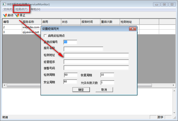 4. 及时发送短信通知管理员,一个检测点支持多个手机号(管理员的)