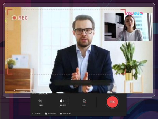 1、灵活捕捉屏幕上任一区域画面,您可以选择全屏或特定区域录制。