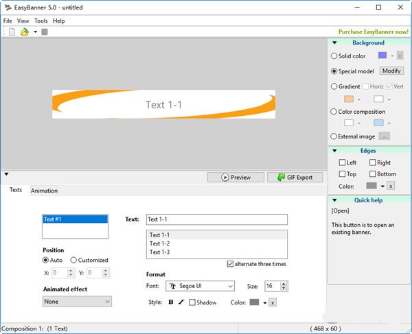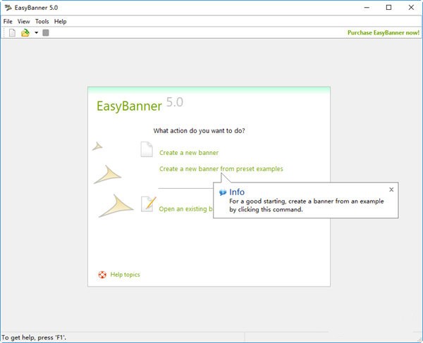 该软件是基于预设的组成,在项目中指定横幅的内容,无论是文本还是图像。EasyBanner提供了一个从现成的例子创建横幅的功能。