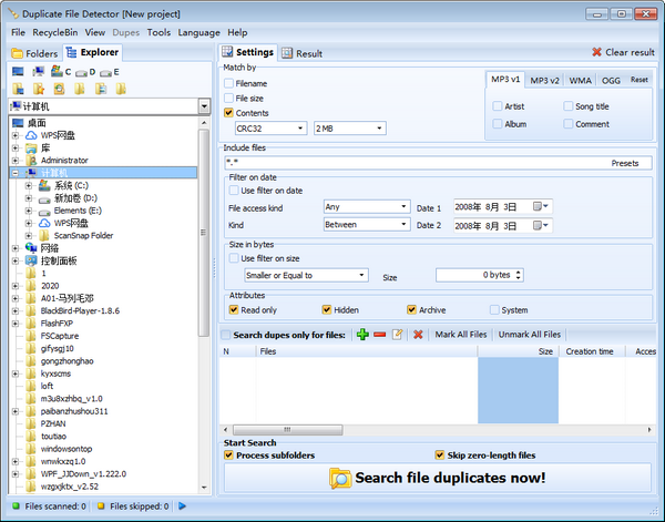 Duplicate File Detector一个特点是可定义的选项比较多;