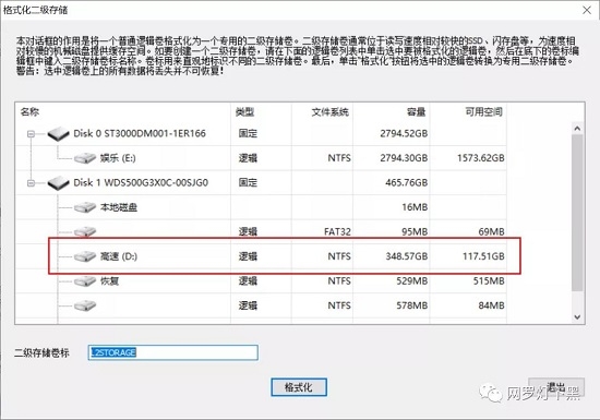 下面的那个二级缓存指的就是从固态硬盘中划分空间提供给机械硬盘做缓存,大家如果有多余的固态盘也可以利用起来,由于需要对固态硬盘进行格式化,就不演示了。