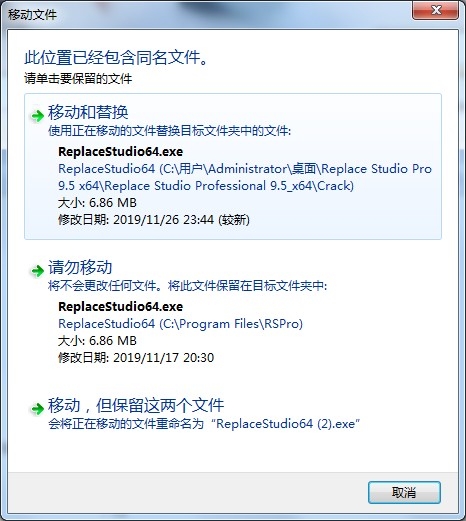 7、将文件“ReplaceStudio64、exe”复制的软件的安装目录下即可