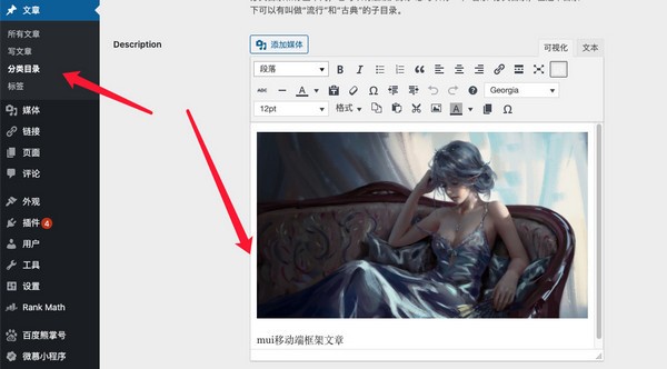 2.因为没有使用插件所以在小程序分类专题的时候自带的接口是没有特色图片的,因此这块是由“啊本博客”提供正规实现,大家在插入图片的时候先回车后在输入文字描述