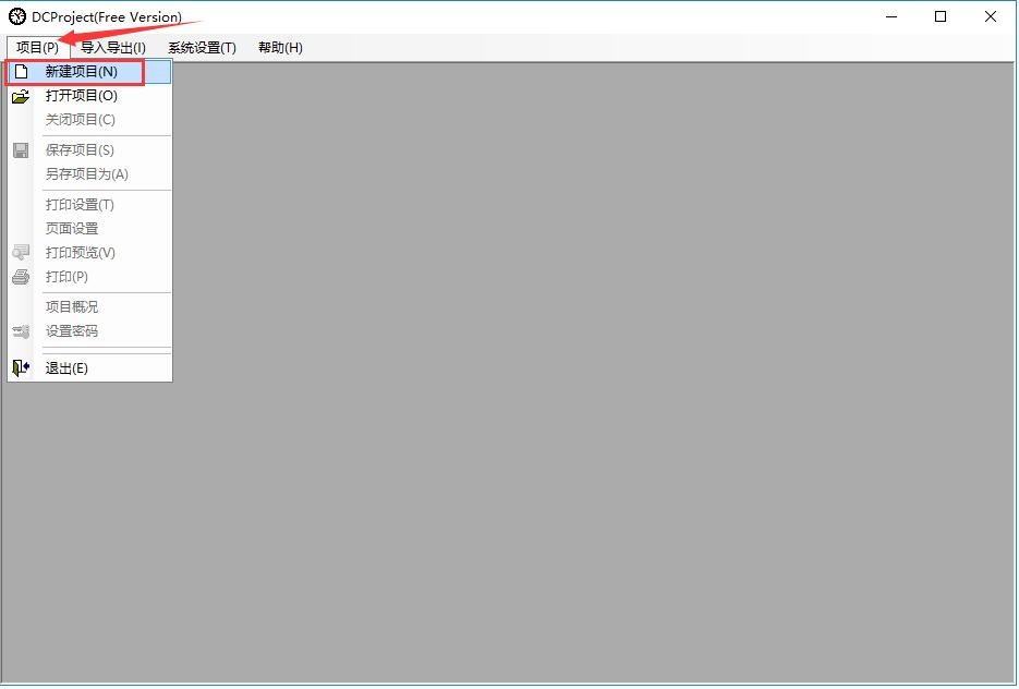 1、打开安装好的DCProject,点击上方菜单栏中的“项目”按钮,然后点击下拉菜单中的“新建项目”功能。